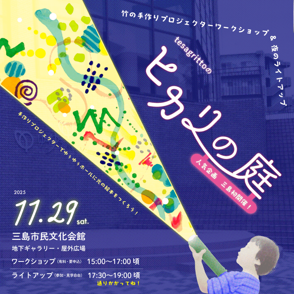 三島市民文化会館の空きスペースを活用する試みとして、11月29日にアートワークショップと野外スペースの空間演出をプロデュースします。(主催:三島市民文化会館)