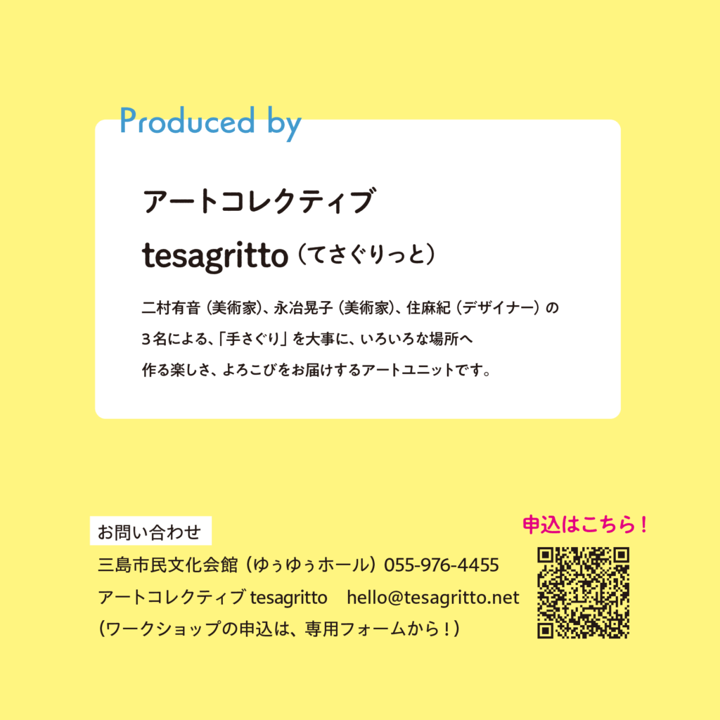 「アートコレクティブtesagritto」は、弊社代表の住と近隣のアーティスト2名の3名で新しく立ち上げたグループです。